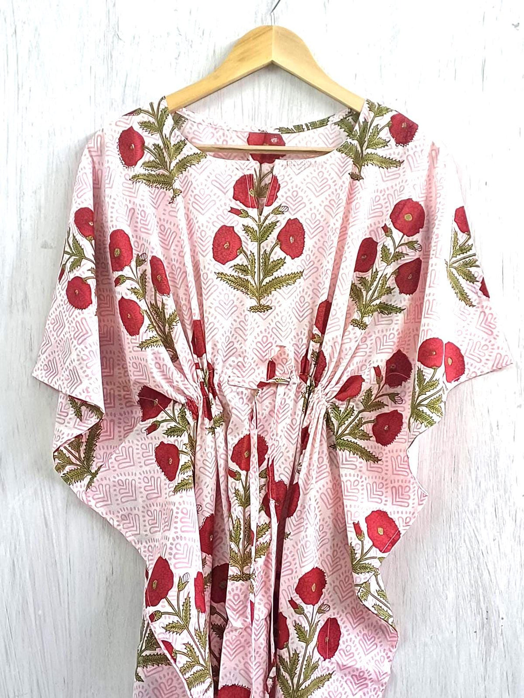 Poppy Hand Block Cotton Kaftan | Flowy Plus Size Boho Fall Maxi Dress