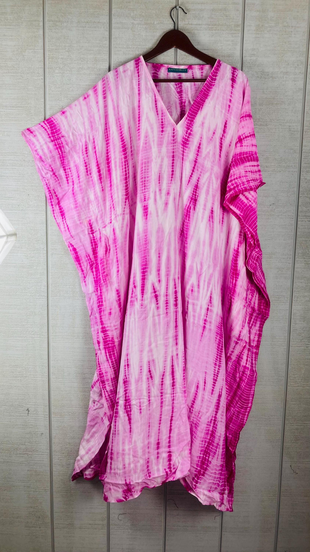 Pink and White Tie Dye Kaftan Dress for Women | Boho Plus Size Hand Dyed Mumu