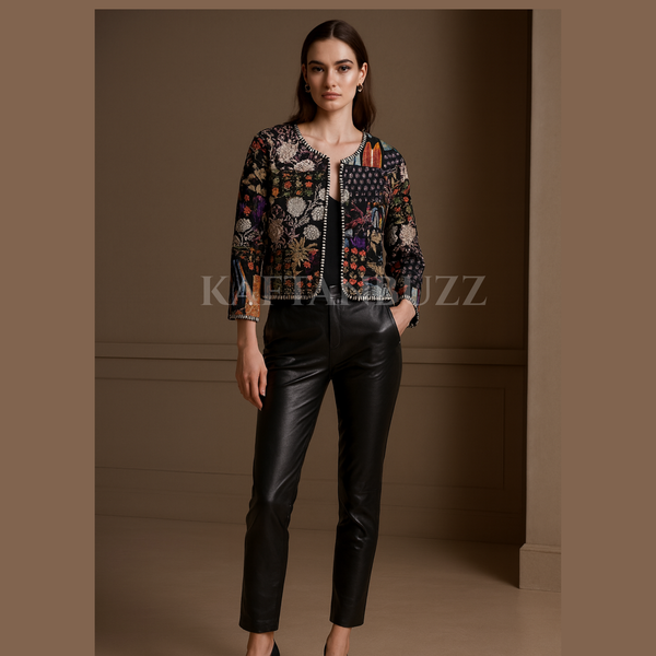 Please note that each patchwork jacket is truly one of a kind and may vary slightly from the photos shown, as it’s made using sustainably sourced fabrics. These subtle variations are part of the charm and individuality that make each handmade piece special.