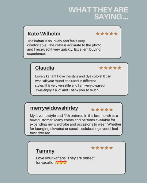 P: S - Don't miss out on these one-of-a-kind, made one piece at a time specially dyed caftans—limited edition, only a few left! Shop now before they're gone!